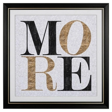 RICHMOND obraz MORE 55x55cm.Piękne, intrygujące arcydzieło.Nowoczesny design ukazano na jasnym papierze połączonym z MDF i oprawiono w elegancką, czarną ramę z drewna.Główną rolę gra tu napis More, czyli więcej w złoto-czarnej kolorystyce.To wspaniały pomysł na ozdobienie Twojej ściany czy prezent dla bliskiej osoby.Polecamy skomponować z obrazem o nazwie Amour.Wymiary: wys. 55 cm / szer. 55 cm / gł. 3,5 cmWaga brutto: 5,8 kg.