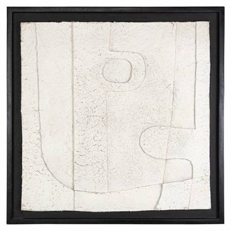RICHMOND obraz PHOEBE TAPIOCA 96,5x96,5cm.Obraz Phoebe marki Richmond Interiors cechuje oryginalny, wyjątkowy styl.Piaskowe dzieło sztuki wykonano z papieru mache, który przeplata różne kształty i wypukłości, aby stworzyć wielowymiarowe wrażenie.Czarną, elegancką ramę zdobi drewno mango.Ta subtelna, geometryczna dekoracja doskonale sprawdzi się w nowoczesnych wnętrzach jako element przyciągający wzrok.Dostępne także inne wersje kolorystyczne.Wymiary: wys. 96,5 cm / szer. 96,5 cm / gł. 2,5 cmWaga brutto: 8,9 kg.