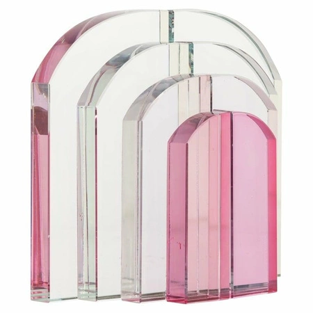 Piękne, subtelne podpórki wykonano ze szkła w dwóch odcieniach: przezroczystym i różowym.