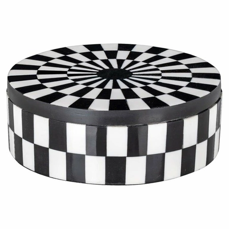 Całość ozdobiono geometrycznym wzorami w kolorystyce biało-czarnej.