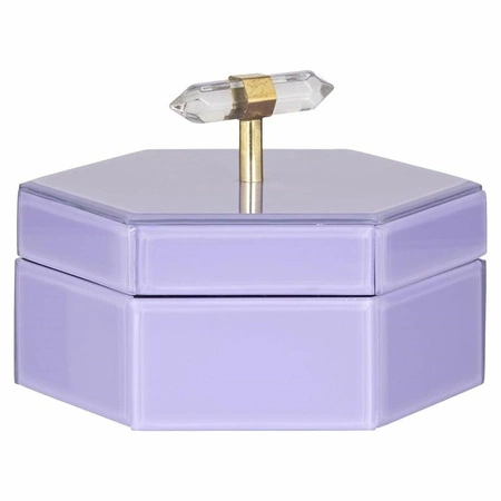 Pojemnik na biżuterię Jutta zachwyca swoim fioletowym wykończeniem i sześciokątnym kształtem, który przyciąga uwagę swoją wyjątkowością.