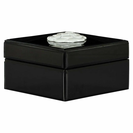 RICHMOND pojemnik na biżuterię LUNE czarny.Pełny klasy i stylu sposób na organizacje biżuterii.Piękne pudełko zdobi MDF oraz aluminium połączone ze szkłem.Całość wykończono w klasycznym czarnym kolorze i udekorowano białą różą u góry w stylu domu mody Chanel.Pojemnik Lune to wspaniały dodatek oraz prezent dla każdej kobiety.Wymiary: wys. 8 cm / szer. 15 cm / gł. 15 cmWaga netto: 0,9 kg.