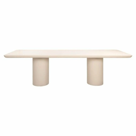 Prostokątny blat o zaokrąglonych krawędziach oraz cylindryczna podstawa tworzy harmonijną kompozycję, która zachwyca subtelnością i spokojem formy.