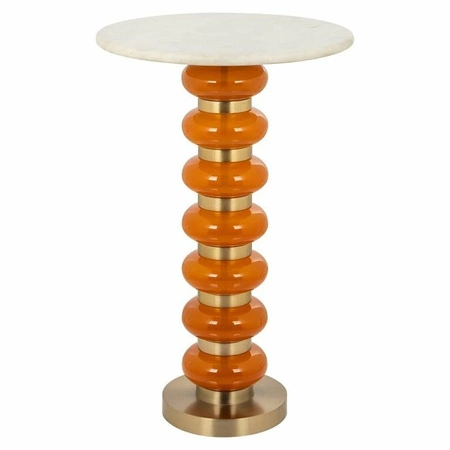 Biżuteryjna pomarańczowa-złota podstawa wykonana ze szkła i aluminium doda wnętrzu luksusowego charakteru i przyciągnie wzrok swoją wyrafinowaną estetyką.