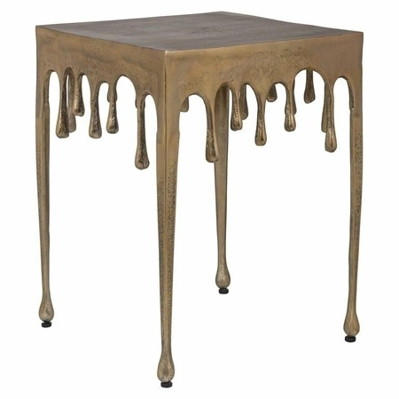 RICHMOND stolik DROPS złoty.Stolik Drops marki Richmond Interiors wyróżnia wyjątkowy, pełny designu wygląd.Główną ozdobą jest niesamowity kształt, przypominający opadające w dół krople.Wykonany jest w całości z mosiądzu (stal w kolorze matowego złota).Z całą pewnością Drops będzie przyciągał wzrok w Twojej strefie wypoczynkowej.Dostępna również czarna wersja oraz z okrągłym blatem.Wymiary: wys. 50 cm / szer. 40 cm / gł. 40 cmWaga brutto: 6,4 kg.