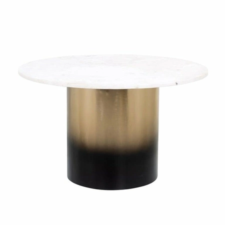 RICHMOND stolik kawowy ALFIE.Niewątpliwie elegancki, stolik kawowy Alfie marki Richmond Interiors pozwala stworzyć stylowe oraz unikalne wnętrze.Posiada piękny, okrągły marmurowy blat i metalową podstawę z zachwycającym gradientowym wykończeniem w kolorze czarnym i antycznym złotym.Ten stolik doda blasku oraz luksusu w salonie.Polecamy zestawić go z wyższym stolikiem Alfie.Wymiary: wys. 44 cm / szer. 72,5 cm / gł. 72,5 cmWaga netto: 24,4 kg.