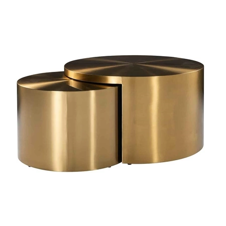 Stolik kawowy BIG&RICH to zestaw dwóch mosiężnych stolików w kształcie walca.Wzmocniono je stopkami, które chronią powierzchnię podłogi przed zarysowaniem.Oryginalna forma stolika nie przytłacza, lecz staje się ciekawym elementem każdego wnętrza.Meble i dodatki w kolorze złotego mosiądzu idealnie sprawdzają się w połączeniu z czernią i bielą, a także z szarościami przeważającymi we współczesnych domach.Wymiary: wys. 45,5 cm / szer. 80 cm / gł. 80 cmWaga netto: 40 kgSposób wysyłki: paleta.