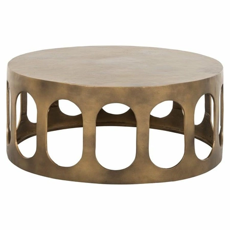 Elegancka propozycja stolika kawowego o industrialnym charakterze, który wykonano z aluminium w szczotkowanym złotym kolorze.