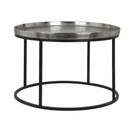 RICHMOND stolik kawowy LYAM 70 srebny.Stolik kawowy Lyam marki Richmond Interiors wykonany jest z aluminium połączonego z metalową czarną podstawą.Blat zdobi piękne wykończenie w odcieniu srebnym.Cechuje go stylowy oraz industrialny design.Lyam doskonale uzupełni Twoją strefę wypoczynkową.Dostępna również wersja w złotym kolorze pod nazwą Milo.Wymiary: wys. 45 cm / szer. 70 cm / gł. 70 cmWaga netto: 10,6 kg.