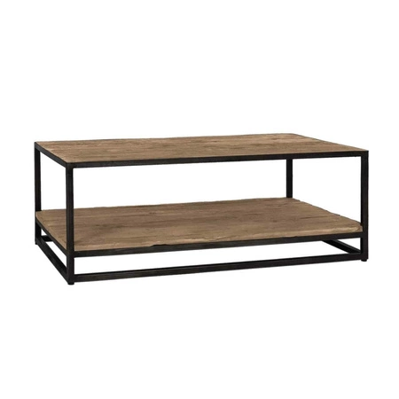 Stolik kawowy RAFFLES powstał w duchu less waste, wykorzystując drewno z odzysku.Rama stolika została wykonana ze stali nierdzewnej w kolorze czarnym.Wzmocniono ją stopkami, które chronią powierzchnię podłogi przed zarysowaniem.Blat oraz praktyczną półeczkę wykonano z grubo ciosanego wiązu.Mebel w takiej formie najlepiej odnajdzie się w przestronnych industrialnych wnętrzach.Wymiary: wys. 47 cm / szer. 130 cm / gł. 81 cmWaga netto: 52,5 kgSposób wysyłki: paleta.