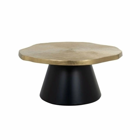 RICHMOND stolik kawowy SASSY.Sassy od marki Richmond Interiors to wyjątkowy, szykowny stolik kawowy.Czarna metalowa stożkowa podstawa wspaniale współgra z unikalnym blatem na górze wykonanym z aluminium w odcieniu szczotkowanego złota.Kształt blatu przypomina liść, który nadaje naturalny charakter oraz niepowtarzalny wygląd całości.Ten poręczny, stylowy stolik, pięknie będzie się prezentował przy sofie jako ozdoba salonu.Polecamy połączyć go ze stolikiem z kolekcji Sassy.Wymiary: wys. 34 cm / szer. 73 cm / gł. 73 cmWaga netto: 12 kg.