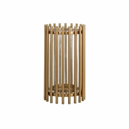RICHMOND świecznik BATISTE L złoty.Dzięki świecznikowi Batiste marki Richmond Interiors wniesiesz do swojego domu szyku i klasy.Cylinder wykonano z przezroczystego szkła oraz zamontowano w kolumnie ze złotych aluminiowych prętów, aby stworzyć element luksusowy oraz wytrzymały.To doskonały sposób na udekorowanie wnętrza.Dostępna także mniejsza wersja.Wymiary: wys. 30 cm / szer. 17 cm / gł. 17 cmWaga netto: 1,9 kg.