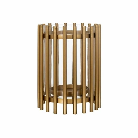 RICHMOND świecznik BATISTE S złoty.Dzięki świecznikowi Batiste marki Richmond Interiors wniesiesz do swojego domu szyku i klasy.Cylinder wykonano z przezroczystego szkła oraz zamontowano w kolumnie ze złotych aluminiowych prętów, aby stworzyć element luksusowy oraz wytrzymały.To doskonały sposób na udekorowanie wnętrza.Dostępna także większa wersja.Wymiary: wys. 22 cm / szer. 17 cm / gł. 17 cmWaga netto: 1,5 kg.