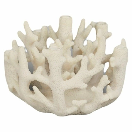 Świecznik Clarice to wyjątkowa ozdoba wykonana z białej żywicy, inspirowana naturalnym wyglądem koralowców.
