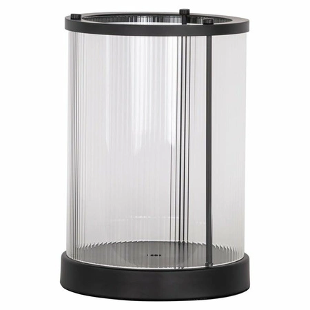 Prosty, czarny, cylindryczny kształt ze szklanym wykończeniem dodaje minimalistycznego uroku, doskonale pasując do współczesnych aranżacji.