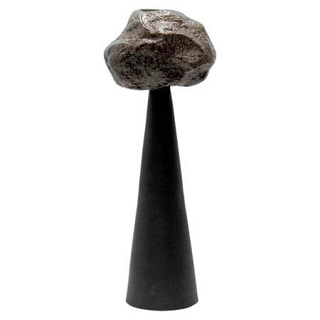 Jego nowoczesna forma składa się z gładkiej, stożkowej podstawy, na której osadzona jest rzeźbiarska, nieregularna bryła przypominająca naturalny kamień lub meteoryt.