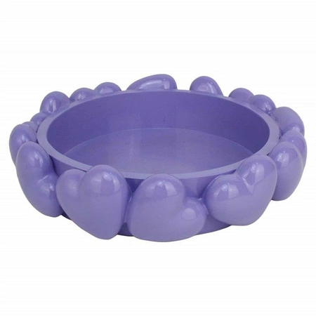 Wykonany z trwałej fioletowej żywicy, wyróżnia się ozdobnym obrzeżem w kształcie wypukłych serduszek, które nadają romantycznego i radosnego charakteru.