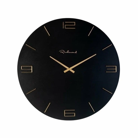 RICHMOND zegar BRYAM czarny.Bryam to okrągły zegar ścienny, który wzbogaci wygląd Twojego wnętrza.Okrągła, czarna tarcza wykonana została z płyty MDF.Czas wskazują elementy z mosiądzu, co nadaje zegarowi szykowny oraz współczesny wygląd.Wymiary: wys. 60 cm / szer. 60 cm / gł. 3,5 cmWaga netto: 2,4 kg.