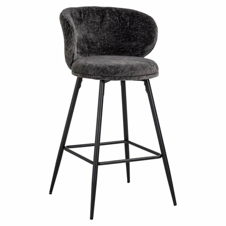 RICHMOND zestaw 2 krzeseł barowych MIMI.Mimi charakteryzuje się szykownym oraz ponadczasowym wyglądem.Kształtne oparcie oraz siedzisko wykonano z pięknej, czarnej tkaniny o nazwie Island graphite 66.Jest to elegancka tkanina, która odpowiada wszystkim aktualnym trendom.Czarną podstawę z podnóżkiem wykonano z metalu w kolorze czarnym.W zestawie znajdują się 2 sztuki produktu.Dostępna także beżowa oraz zielona wersja.Wymiary: wys. 97 cm / szer. 52 cm / gł. 56 cmWaga brutto: 15 kg.