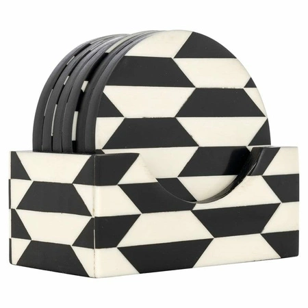 Ręcznie wykonany z żywicy czarno-biały zestaw w geometryczne wzory doskonale sprawdzi się w celu położenia kubków z napojem, a także udekorowania Twojej jadalni.