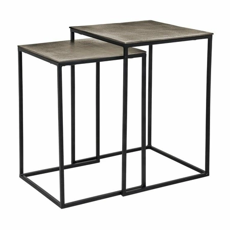RICHMOND zestaw stolików kawowych FINN.Finn marki Richmond Interiors to ciekawy industrialny zestaw 2 stolików kawowych.Różne wysokości pozwalają na dowolną aranżację.Całość wykonana została w wyniku połączenia aluminium oraz metalu w pięknym odcieniu szampańskiego złota.Stoliki Finn charakteryzują się solidnym wykonaniem, imponującym stylem oraz elegancją.Wymiary: wys. 56 cm / szer. 40 cm / gł. 40 cmWaga brutto: 11 kg.
