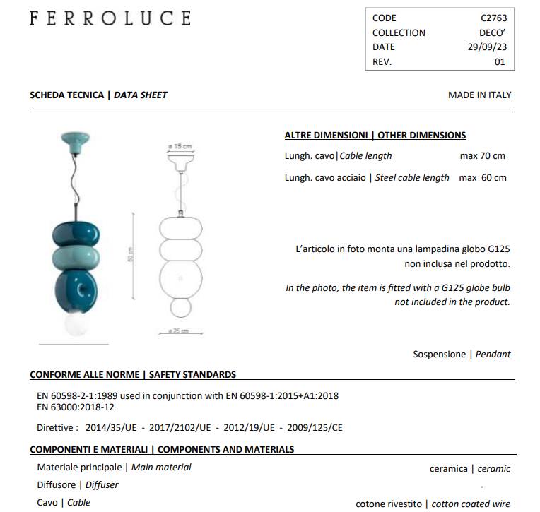 - Uniwersalność: Lampa PENDANT WITH 3 ELEMENTS BUMBUM Ferroluce C2763-MIX świetnie komponuje się z różnymi stylami wnętrz, dodając im wyjątkowego uroku.