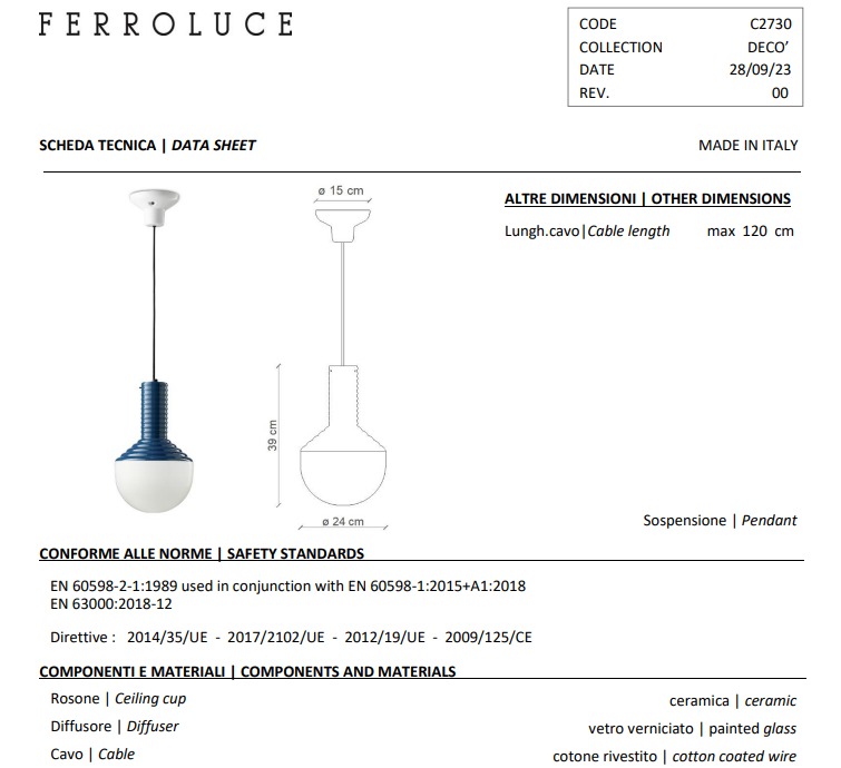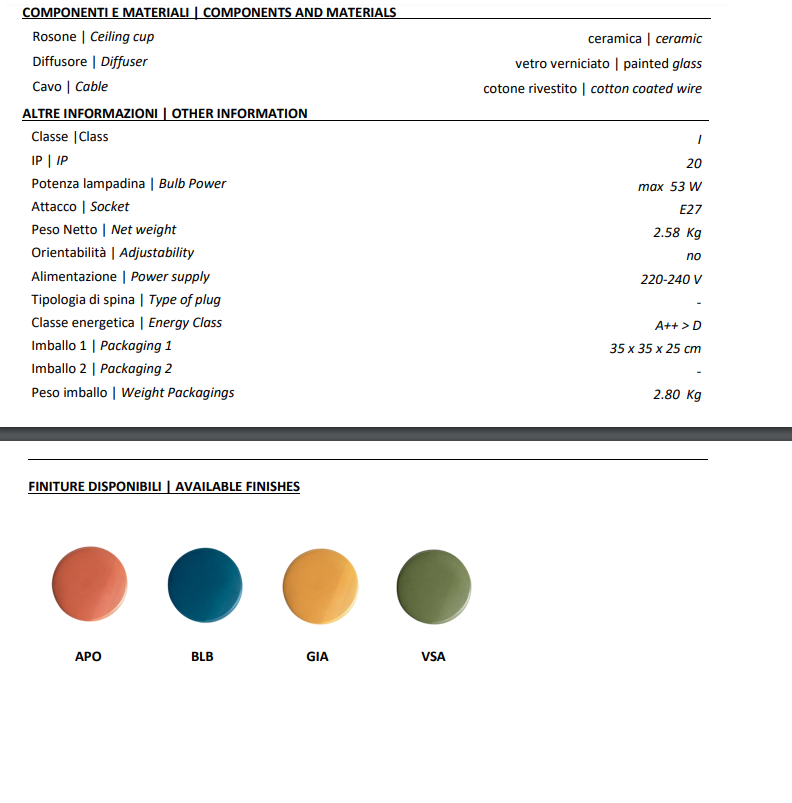 Kluczowe cechy lampy PAINTED GLASS PENDANT SELARON Ferroluce C2730-VSA: