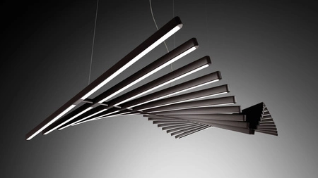 Każdy z pałeczek świetlnych tworzących poziomą lampę wiszącą Rhythm jest wyposażony w źródło LED.