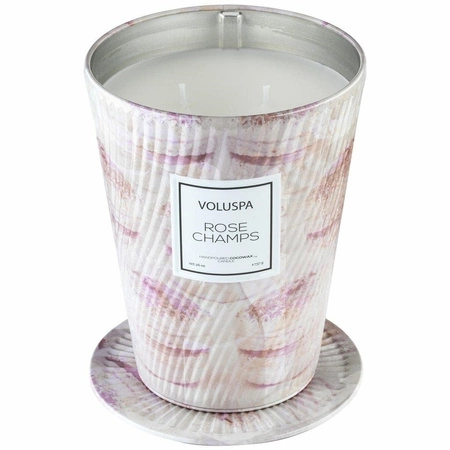 Kolekcja Rose Champs: wytrawny różowy szampan, słodzone płatki róż.Uczta dla zmysłów, wyjątkowy kształt stożka lodowego daje możliwość cieszenia się designem na każdym poziomie palenia świecy.Barwne, metalowe opakowanie z wirującą teksturą zdobione subtelnie grafiką ciasteczek.Opakowania są ozdobione kolorowym, delikatnie wirującym wzorem tak aby przypominały ciasteczka, które były inspiracją dla zapachu oraz opakowania.Rozwiązanie do wykorzystania w małych pomieszczeniach lub podczas podróży.Pojemność: 737 gCzas palenia: 80 godzinWysokość: 14,9 cm, średnica: 12 cmWytłaczany pojemnik blaszany z wzorem wirowymWłasna mieszanka wosku kokosowegoRęcznie zalewana w Stanach ZjednoczonychZrównoważona, ekologiczna, wolna od pestycydów produkcjaNie testowana na zwierzętachNie zawierają ftalanów, parabenów i siarczanów100% naturalne knoty bawełnianeNiezrównana integralność zapachu