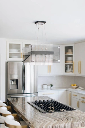 - Żyrandol APOLLO posiada nowoczesny i geometryczny kształt, który wyróżnia się prostymi liniami i elegancką formą. Przezroczyste szklane panele otaczające źródła światła dodają mu lekkości i subtelności, jednocześnie podkreślając jego luksusowy charakter.